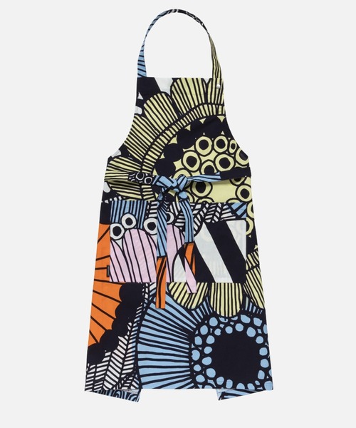 家庭菜園を意味する、賑やかな「Siirtolapuutarha」柄のエプロンです。薄くて軽いコットン素材を使用していて、家事をしているときに動きやすさを実感できます。滑り落ちの心配がないホルターネックストラップは、ドットボタンで調節が可能。ウエスト紐は長く、前で結ぶので解けたときにも直しやすいです。