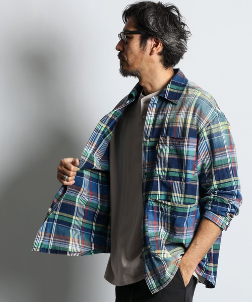 シャツとカバーオールのデザインをMIXしたシャツジャケットモデル。