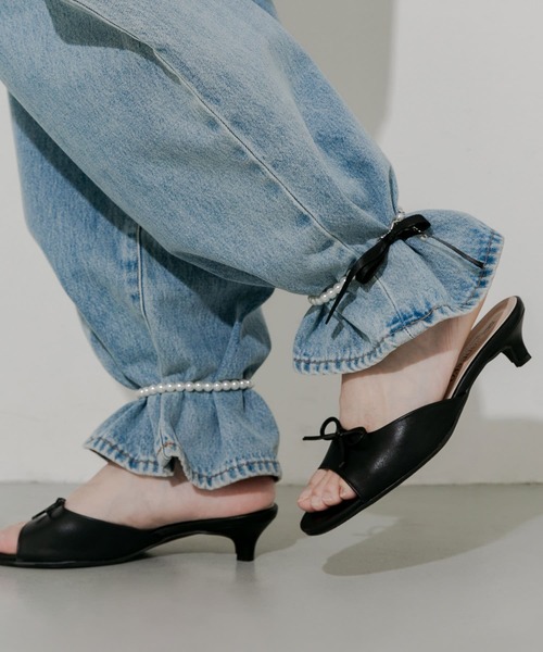 リボンとパールで可愛らしさをプラスできるので、シンプルなコーディネートも一気に華やかに。