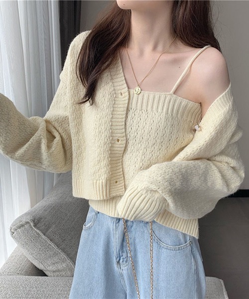 参考商品名:YUGA ショートツーピース ニットトップス+カーディガン