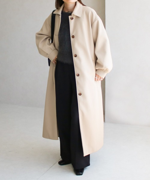 キーワード:ステンカラーコート コート レディース ロング丈 無地 秋 冬