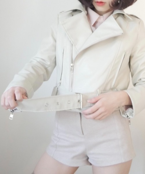 キーワード:レザージャケット ライダース レディース ダブル 無地 秋 冬