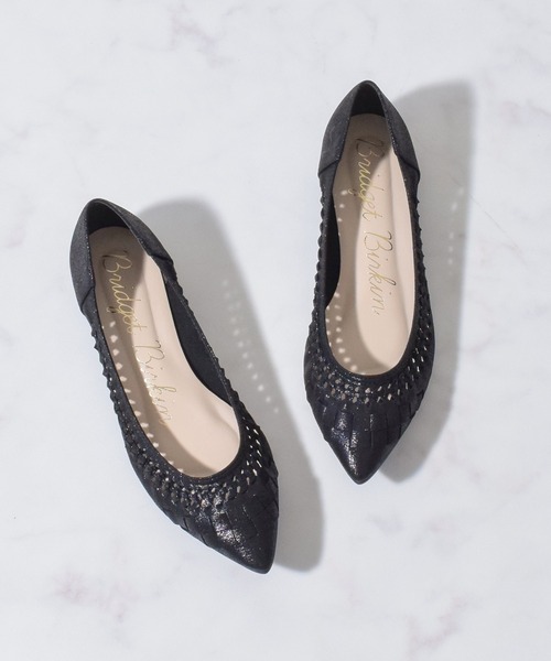 【Bridget Birkin/ ブリジット バーキン】柔らかい印象を持つ編み込みデザインのフラットシューズ。エレガントなポインテッドで、シンプルながら華やかな足元を演出します。カジュアルになりすぎずデイリーに履いていただけます。コーディネートをワンランクアップさせてくれるアイテムです。
