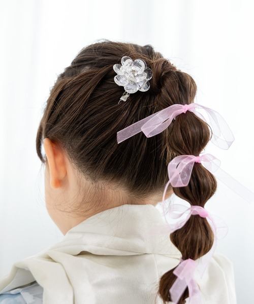 花の中心には多面体のクリアビーズが施され優美な印象です。小ぶりの髪飾りなので、ちょい足しにもぴったりです。