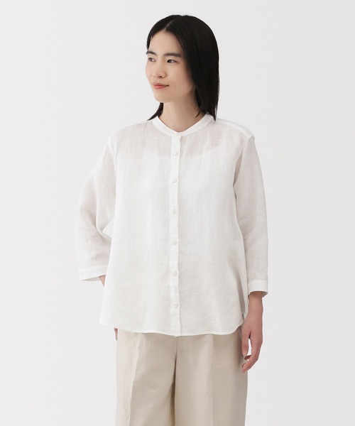 【こちらもおすすめ】同素材の「リネン洗いざらしレギュラーカラー長袖シャツ」・「リネン洗いざらし長袖シャツワンピース」・「リネン洗いざらしイージーワイドパンツ」・「コットンリネンデニムイージーワイドパンツ」もおすすめです。
