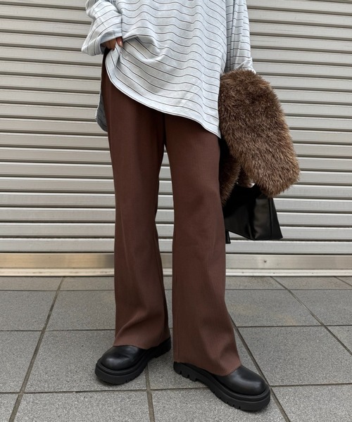 柔らかな生地にウエストゴムで、リラックスして履けるイージーパンツ仕様。