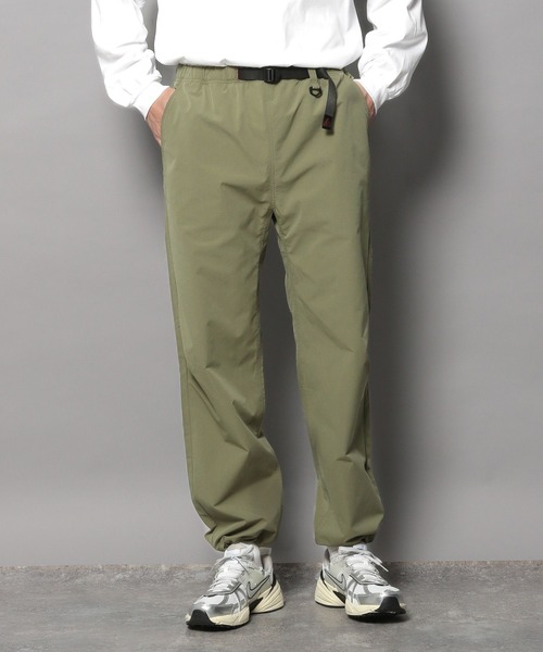 合繊素材のトップスやアウトドアディティールのあるトップスと合わせるのがおすすめ。