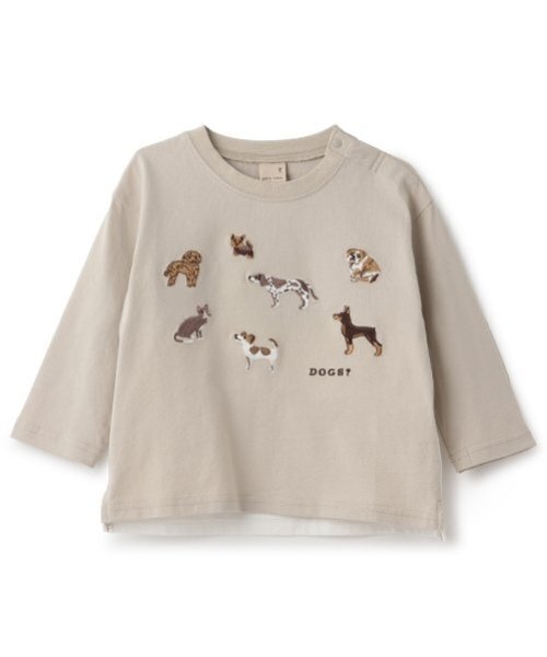 さまざまなワンちゃんの刺しゅうをちりばめた長袖Tシャツです。