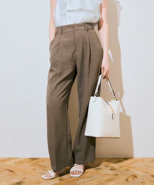 24春夏モデルの2タックデザインより、お腹周りがすっきりと見える1タックデザインに変更し、フロント中心タックから流れるセンタープレスがすっきりと細見えして脚長美脚効果が期待できるシルエットにしています。