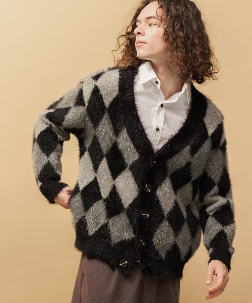 参考商品名:mcg2930- フェザーヤーンアーガイルカーディガン