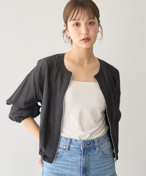 トレンドのシアー素材で仕立てたショートシャツブルゾン。