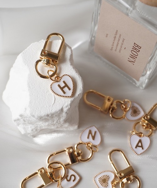【 ammy. / エイミードット 】 イニシャル ペンダント ハート キーホルダー / ホワイト