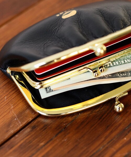 牛革を用いたがま口に〈BEAMS JAPAN〉のロゴを箔押しした特別な仕様。