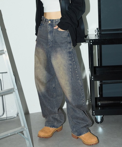 立体裁断を取り入れたシルエットに、トレンド感のあるヴィンテージ加工が目を惹くバレルデニムパンツが登場!