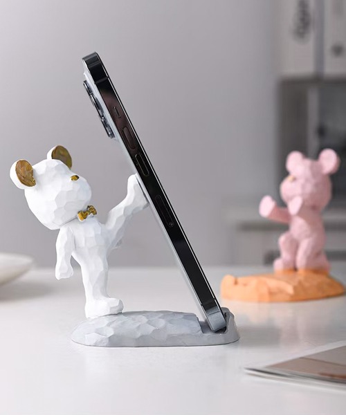 白を基調としたクマ型スタンドは、オフィスやリビング、寝室など、さまざまな場所にぴったり。