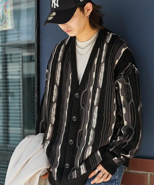 キーワード:カーディガン メンズ ストライプ 長袖 秋 冬