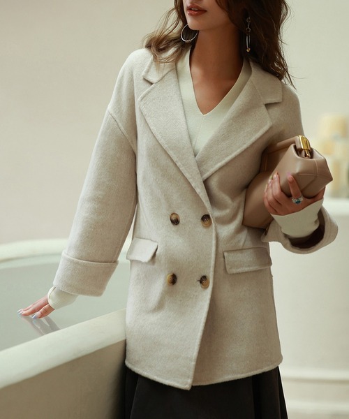 キーワード:ピーコート pコート レディース ロング丈 無地 秋 冬