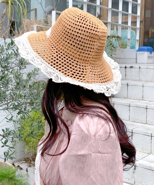 レースリボンが愛らしいフェミニンな麦わら帽子。