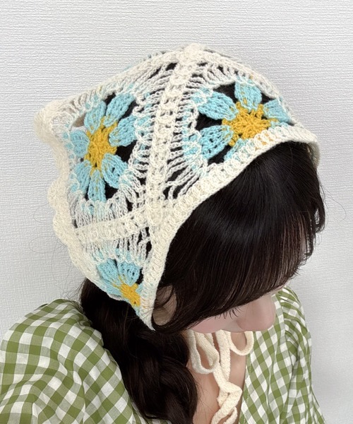 ざっくりとした手編みのような編み目が愛らしいバブーシュカ。