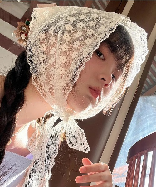 レースの透け感が愛らしくフェミニンな雰囲気のバブーシュカ。