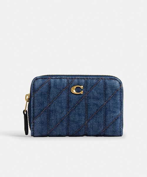 キャッシュレス派にとって財布代わりにもなる、手のひらサイズのカード ケース(ミニ財布)。ナッパ レザーとキルティング加工を施したデニムに、コーチの“C”がアクセントを添えます。