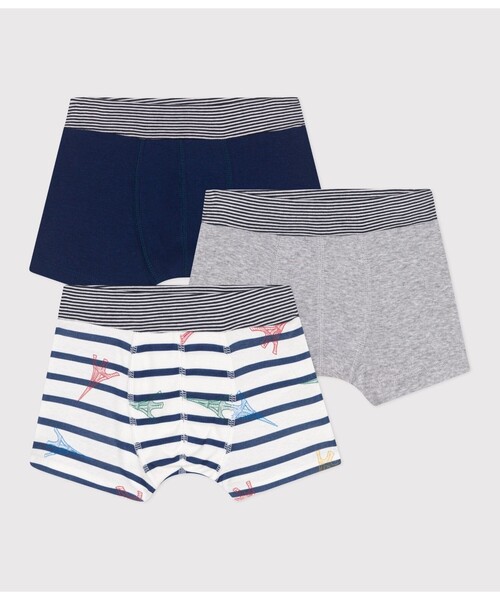 マリニエールボーダーにエッフェル塔をあしらったプリント、シンプルなプレーンカラーを色違いで揃えたトランクス3枚セットです。環境にやさしい、第二の肌と呼ばれるやわらかな手触りと伸縮性に優れた1×1リブ編み素材を使用し、快適な着用感を実現しています。ウエストゴムのミラレボーダーがデザインの贅沢なアクセントに。ご自宅用としてはもちろん、何枚あっても嬉しいアイテムはギフトにも最適です。※濃色の製品は、摩擦や洗濯の際に色落ちや色移りをする場合があります。中性洗剤で単独洗いをしてください。