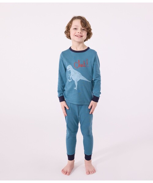 キッズに人気の恐竜プリントをあしらった長袖パジャマです。環境にやさしく、第二の肌と呼ばれるほどやわらかな1x1リブ編みコットン素材を使用し、ナチュラルな着心地を実現。袖口と裾にあしらわれたリブが、睡眠時の着崩れを防止します。お家でのリラックスタイムから就寝時までを快適に過ごせるキュートなアイテムです。※濃色の製品は、摩擦や洗濯の際に色落ちや色移りをする場合があります。中性洗剤で単独洗いをしてください。