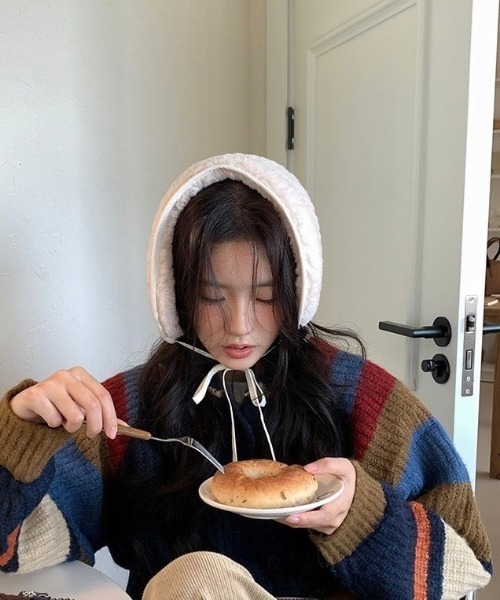 ・ボリュームのあるイヤーマフ。暖かさはもちろん、小顔効果も!