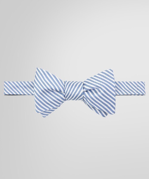 艶のあるシルクで織り上げたシアサッカー生地を用いた春夏向けのボウタイ春夏のプレッピースタイルに欠かせないシアサッカー生地を用いた、軽やかな雰囲気のボウタイです。ジャケットスタイルやカジュアルなコーディネートにお薦めです。■ご自身で結んでいただくセルフボウタイです。