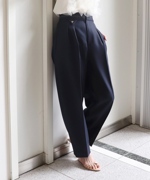 タックデザインにより腰回りにゆとりを持たせつつ、裾に向かって細くなるラインが美しいシルエットを作り出します。