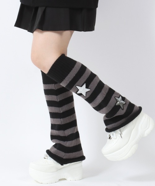 ハートクロスモチーフレッグカバー・スターワッペンボーダーレッグウォーマー/病み系 地雷女子 サブカルファッション