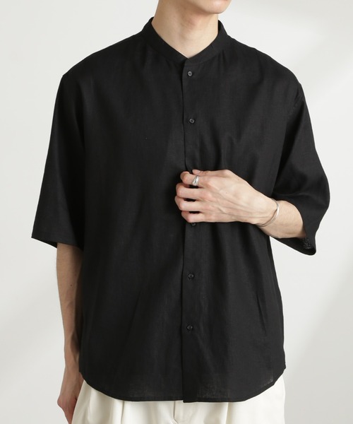 気温の上がる季節を爽やかに過ごすアイテム。リネンの柔らかな風合いと抜け感を演出したバンドカラーがマッチした今夏おすすめの1着です。