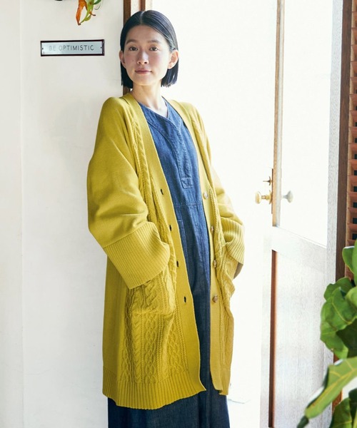 おしりまでしっかりと包んでくれるロング丈で、今回はガウンのように袖口をぐっと広くしてリブ幅も太幅にしてみました。