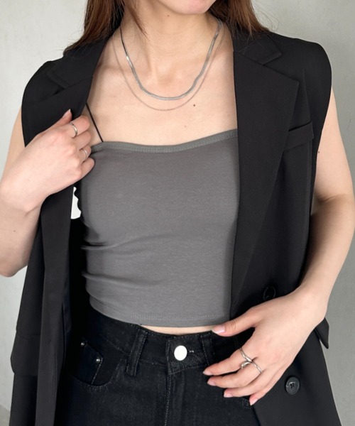 1枚持っておくと重宝するカップ付き細ストラップチューブトップス
