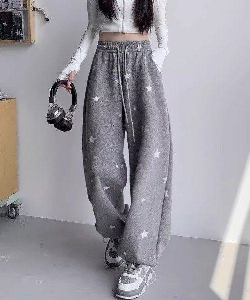 ウエストはゴム仕様のワイドシルエットのルーズスウェットパンツは