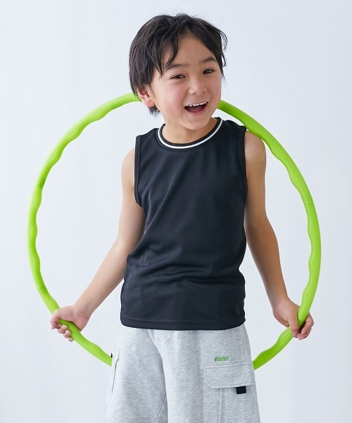 首元のラインがポイントのタンクトップ。インナーとしても、トップスとしても着用できるアイテムです。