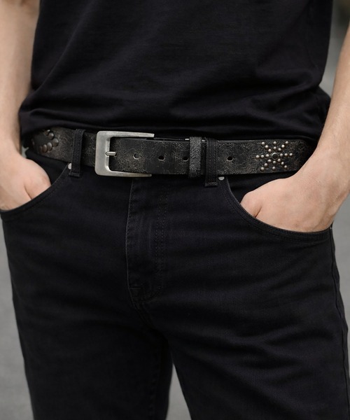 シルバースタッズで幾何学や花柄を表現したデザインベルト。