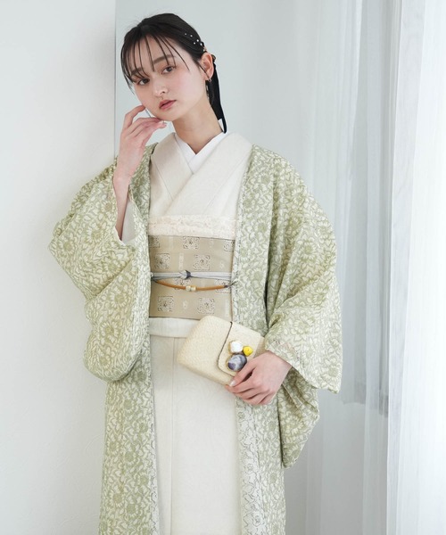 長羽織 羽織 着物 レディース 花柄 日本製 国産生地 塵除け フリーサイズ 和装コート アウター 透け感 シースルー カジュアル お洒落 上品 エレガント 春夏秋 緑 グリーン