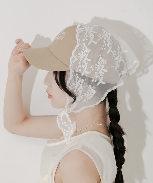 繊細なレースデザインがガーリーな雰囲気のスカーフ。