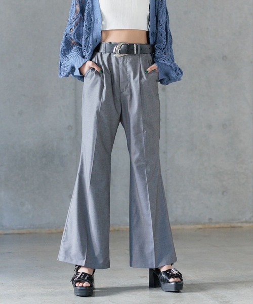 脚のラインをキレイに見せてくれるフレアーシルエットのスラックス。
