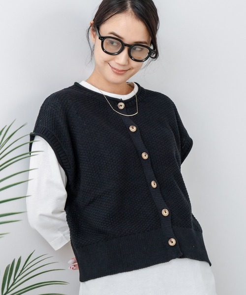 鹿の子編みの綿ニットと7分袖Tシャツのセット商品です。