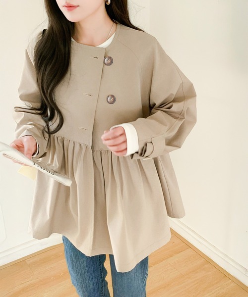 【ペプラムシルエットコート ウエストギャザー×立体ペプラムデザイン】