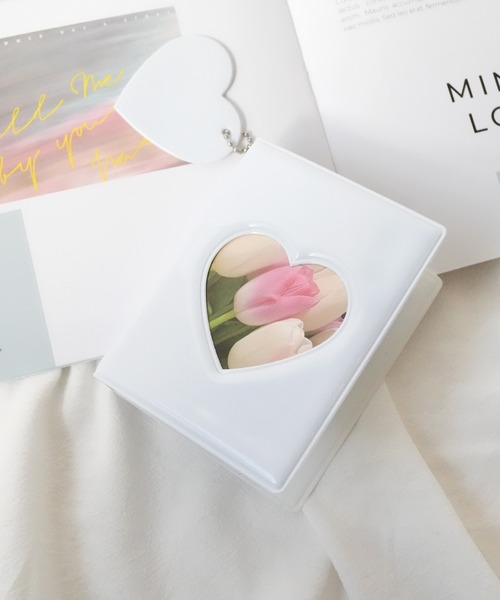 フロントがハート型のクリア窓になっているので、お気に入りの一枚を入れて楽しめます。
