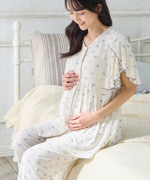 トップスはかけ違え防止のスナップボタン仕様になっていて、前を開けての授乳もスムーズ。