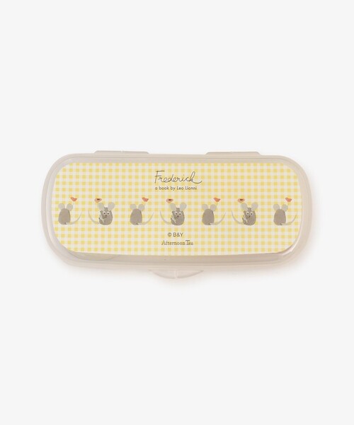 黄色いチェック柄とフレデリックの組み合わせは、アフタヌーンティーだけのオリジナルデザイン。お子様でも握りやすい太めのグリップのフォークとスプーンをセットにしました。おうちでお食事の練習をするのはもちろん、ケース付きのためお出かけのときにも便利ですよ。ケース、カトラリーともに食洗機対応なのも魅力。お皿洗いの負担を減らしたい方にもうれしいですよね。同シリーズから離乳食用のフードカッターを展開しているので、一緒に揃えてギフトにするのもおすすめです。