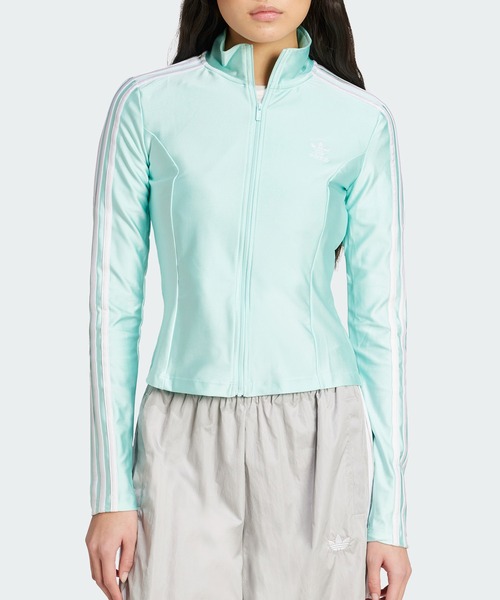 【アディダス公式ショップ】リサイクル素材を一部使用した、トラックジャケット。ちょっとした用事で出かけるときも、家でのんびりするときも、このアディダストラックトップが活躍。身体をぴったり包むスリムなシルエットで、素材には艶やかなトリコットを用いてオーセンティックに仕上げている。袖にスリーストライプスを、胸に小さなトレフォイルロゴをそれぞれ配したアディダスのシグネチャースタイル。