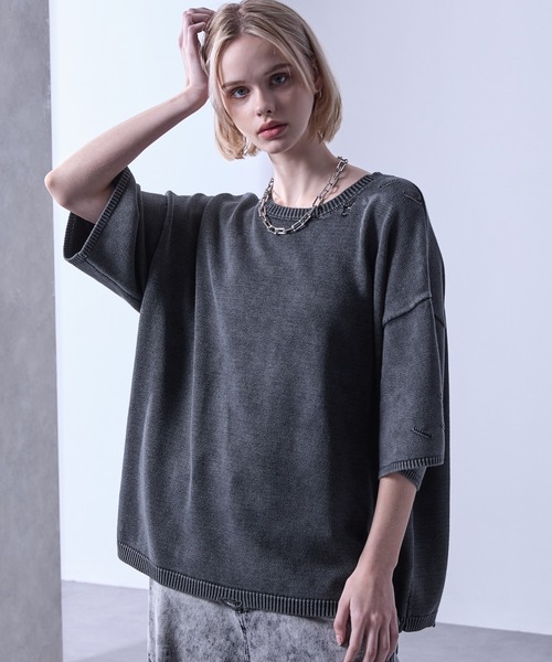 ベーシックなクルーネックデザインを、肌なじみの良い綿100%素材のニットで仕上げました。通気性に優れ、さらっとしたナチュラルなタッチが魅力です。シンプルな中にも表情を添えるため、程よいダメージ加工をプラス。やりすぎない絶妙な加工感で、デニムやヴィンテージライクなアイテムとの相性も抜群です。大人カジュアルに程よいこなれ感を演出します。リラックス感のあるルーズなシルエットは、1枚でもレイヤードでもサマになり、Tシャツ感覚で気軽に着られながら、ニット特有の上品さも兼ね備えています。