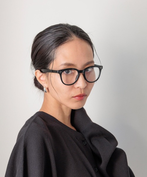 オフィスやフォーマルシーンでも浮かない、ウェリントン型の伊達メガネ。