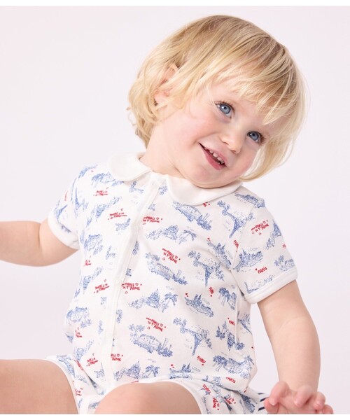 パリを象徴する建造物プリントをあしらったショートロンパースです。環境にやさしく、第二の肌と呼ばれるほどやわらかな1x1リブ編みコットン素材を使用し、ナチュラルで快適な着用感を実現。また、やさしい印象をプラスする丸衿がデザインのアクセントに効いています。前面が大きく開くので、オムツ替えやお着替えも簡単。脱ぎ着が楽なうえ何枚あっても嬉しいアイテムは、ご自宅としてはもちろん、出産祝いなどのギフトにもおすすめです。※濃色の製品は、摩擦や洗濯の際に色落ちや色移りをする場合があります。中性洗剤で単独洗いをしてください。