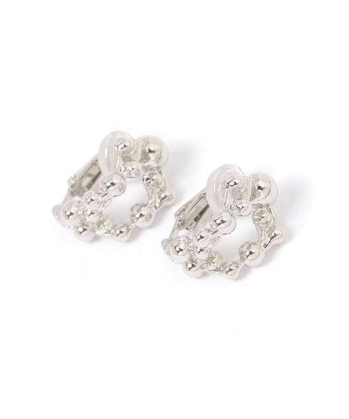 大きさの異なるボールモチーフを連ねたイヤリング。